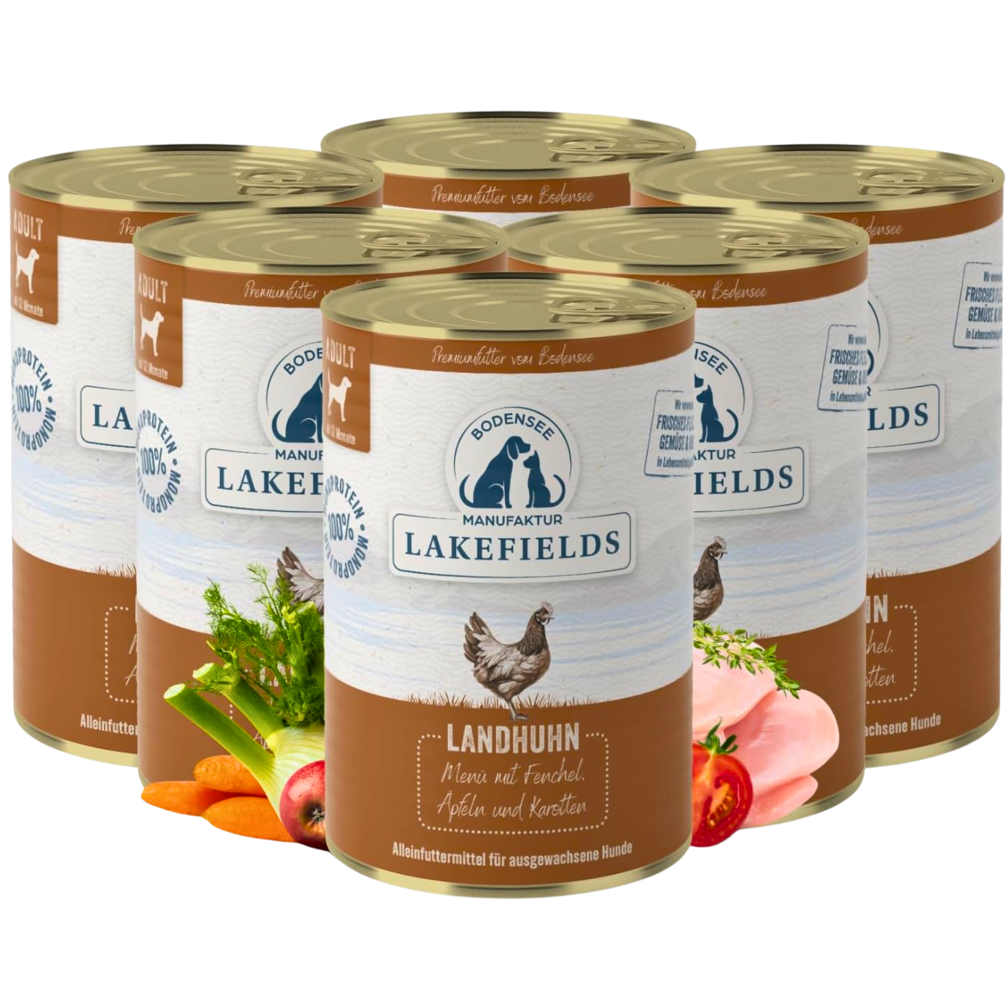 Lakefields Nassfutter Huhn – natürlich, regional, gesund und einfach unwiderstehlich lecker. Gib Deinem Hund das Beste aus der Natur!